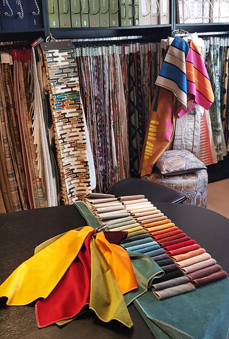 Le Tri Logis, c'est l'endroit où tous les projets de décoration prennent vie dans la réalité des matières 3D, avec une collection d'échantillons en bois, peintures, tapis, tissus, papiers peints, ... à votre disposition pour toucher et visualiser concrètement.